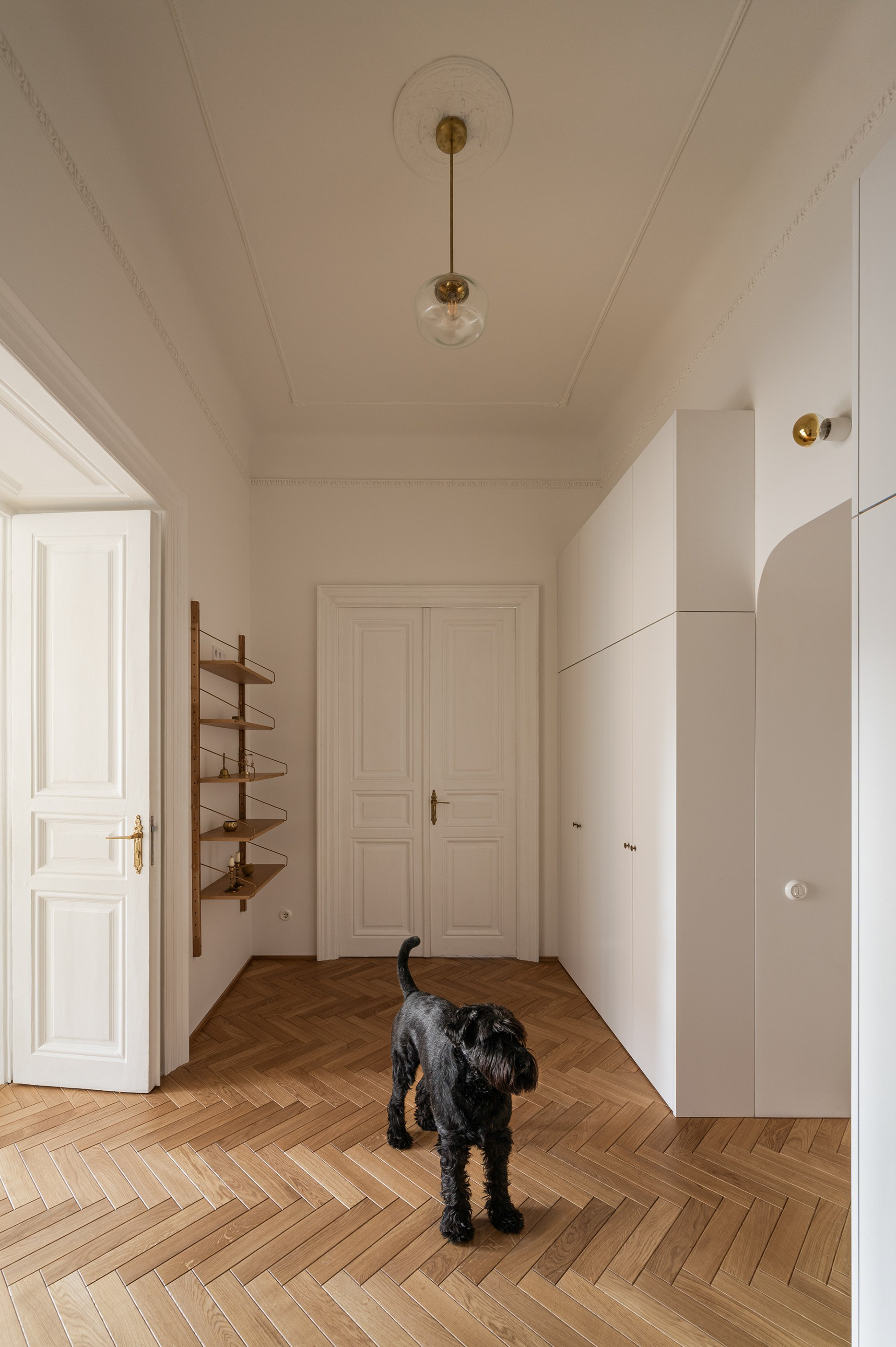 Власники квартири – сім‘я з двома дітьми та улюбленим псом Нойтом. Головним завданням було організувати простір так, аби всім було комфортно: мати місце для себе та спілкування з близькими. Сім‘я часто приймає гостей, тож потрібно було передбачити місце збору, великий розкладний стіл та простір для зберігання гостьового приладдя.
